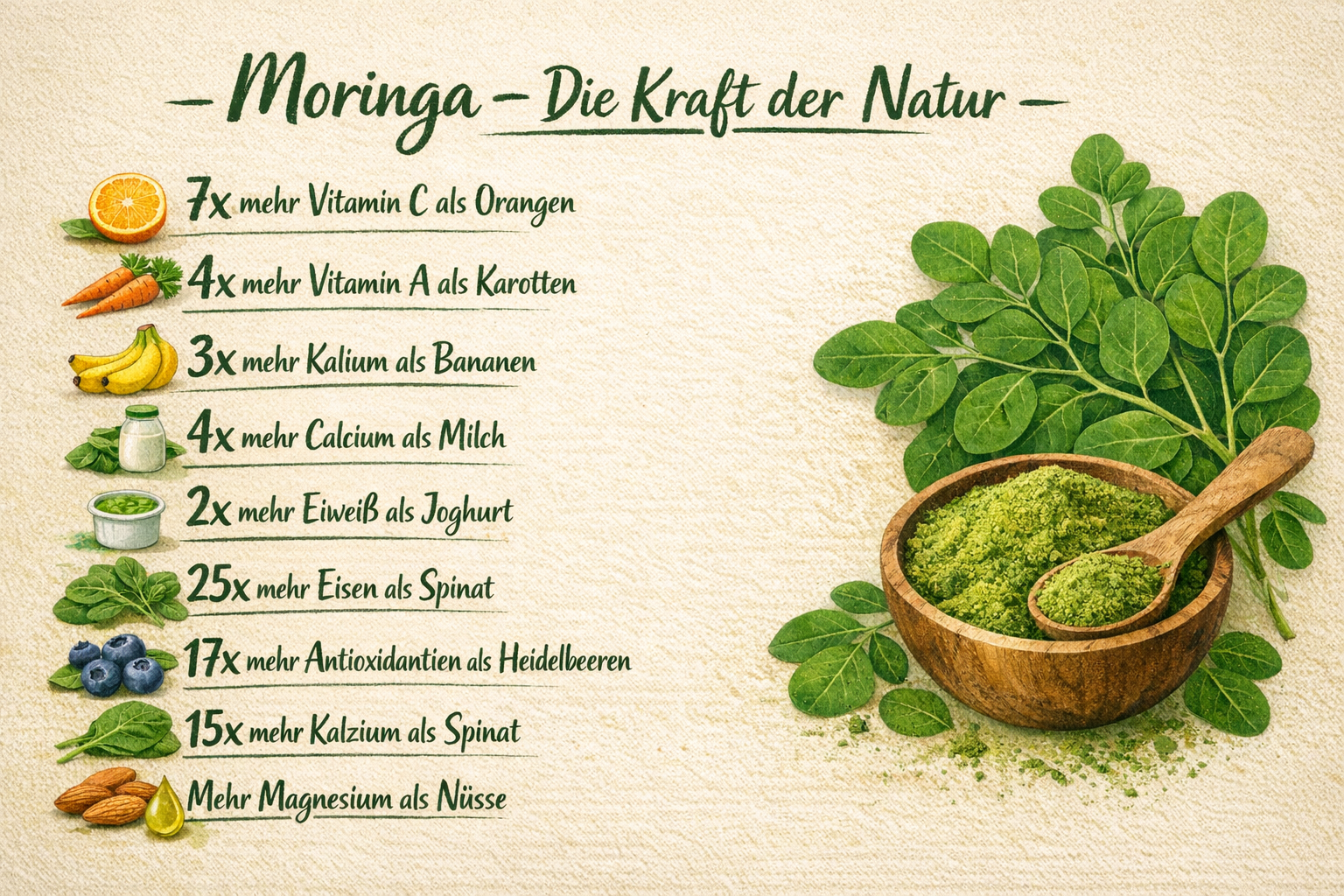 Moringa oleifera ist eine Pflanze mit vielfältigen pflanzlichen Inhaltsstoffen. Aufgrund dieser natürlichen Zusammensetzung wird Moringa häufig als pflanzliche Ergänzung im Rahmen einer bewussten und ausgewogenen Ernährung verwendet. Die Pflanze ist weltweit bekannt und vielseitig einsetzbar.